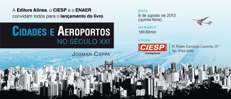 A Editora Alínea, o CIESP, e o ENAER convidam para o lançamento do livro "Cidades e Aeroportos no Século XXI", por Josmar Cappa - Diretor Técnico do COINFRA - CIESP.